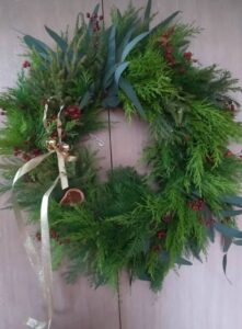 去年お届けしたナチュラルクリスマスリースを、