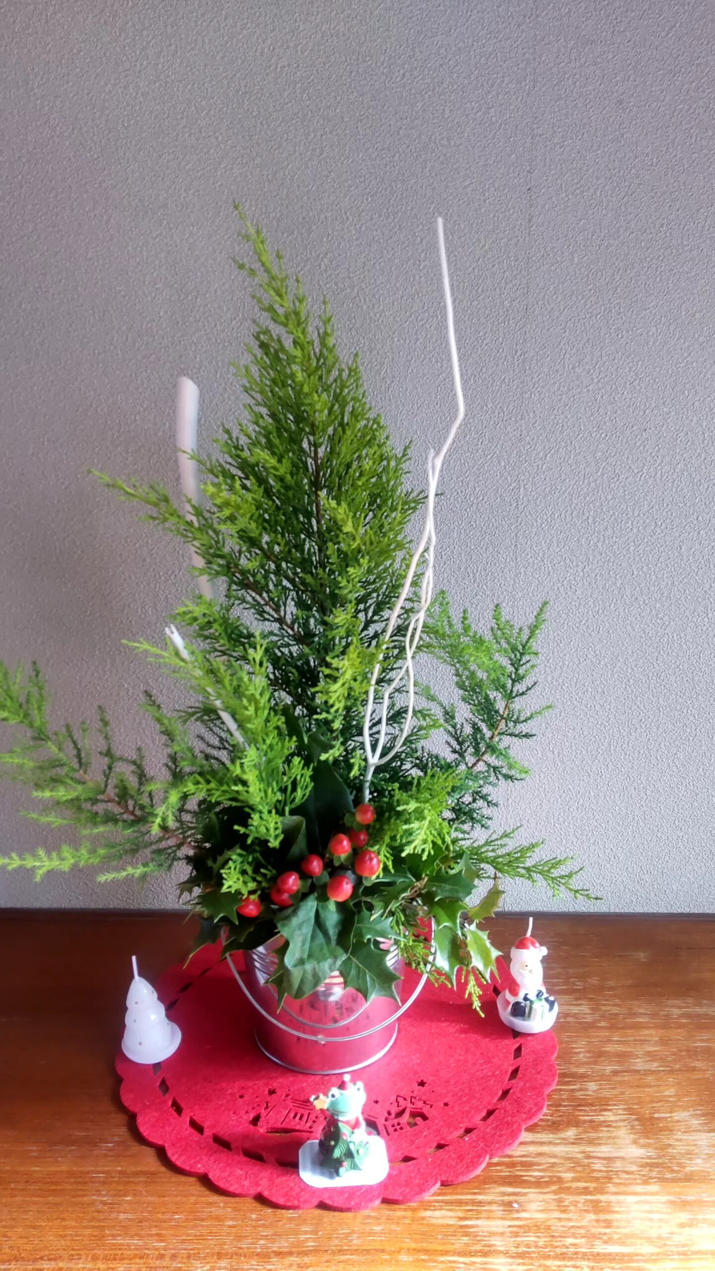 庭の枝や、ゴールドクレストに飾りを付けるだけで
