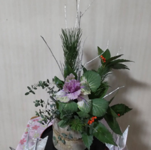 このようなお正月アレンジほぼ松は上向きですが😆